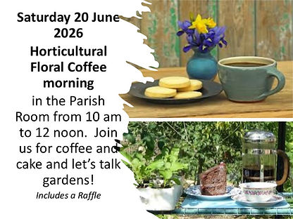 A note for the diary – a new social event being held in the parish rooms 10-12 on Saturday 20th June -a Horticultural Floral Coffee morning . Lots of gardening chat to accompany coffee and home made cakes